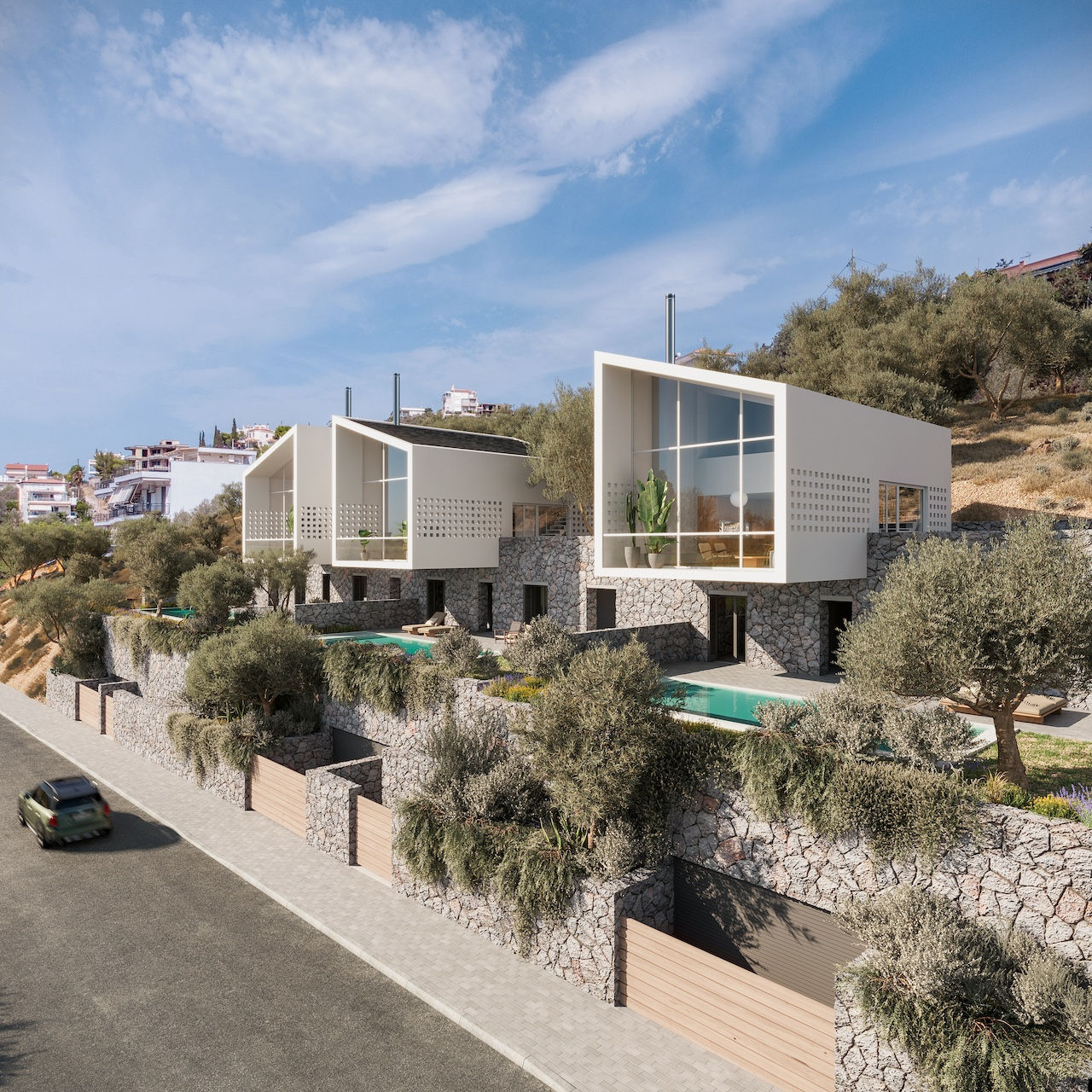 Nestled in the prestigious area of Agios Spyridonas in Porto Rafti, these three independent residences represent the pinnacle of modern luxury. Each home is a masterpiece of design and comfort, offering an unparalleled living experience with panoramic views of the sea.
